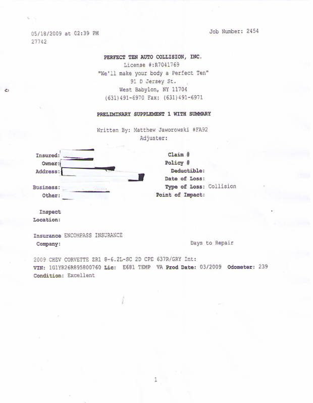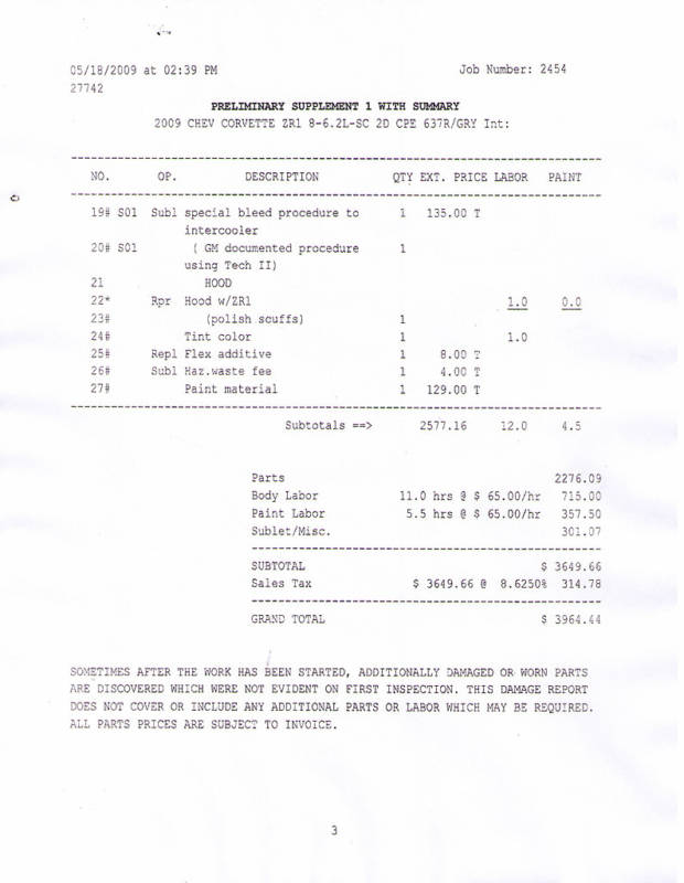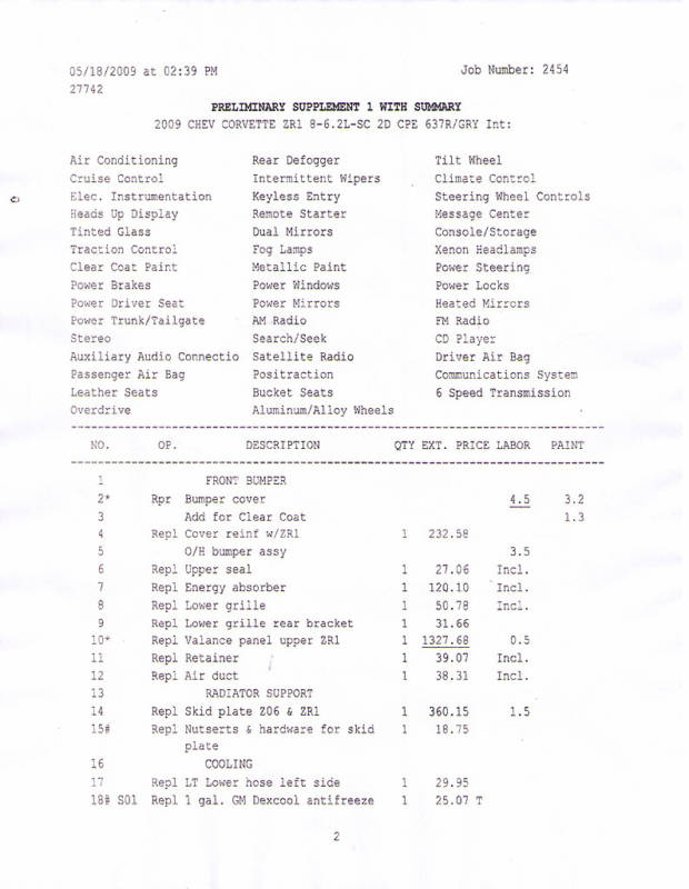 1YY87 CORVETTE ZR1 2 DOOR 103970.00 96692.10 INVOICE 03/23/09