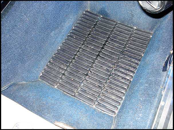 Along with the custom floor grates that were a trademark feature of the GM Styling specials, the car was fitted with six taillights, and the lower front fenders were modified by filling in the scallops and creating openings for side-mounted exhaust. These were originally simulations; true side exhaust did not appear until 1965 but several Mitchell Corvette specials had a variety of such pieces that eventually evolved into the first production systems. During the car's restoration, Werner Meier worked from period photographs to make aluminum recreations which he rendered functional by fitting them with internal mufflers. Because the pearl Blue paint had begun to craze, he also reluctantly repainted the body.