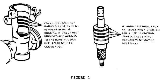 Ring contact marks in the valve bore is normal. If ring groove wear exists, replacement of the housing is necessary to assure that replacement rings will not eventually wear further into the housing and result in a recurrence of a lack of power assist symptom.