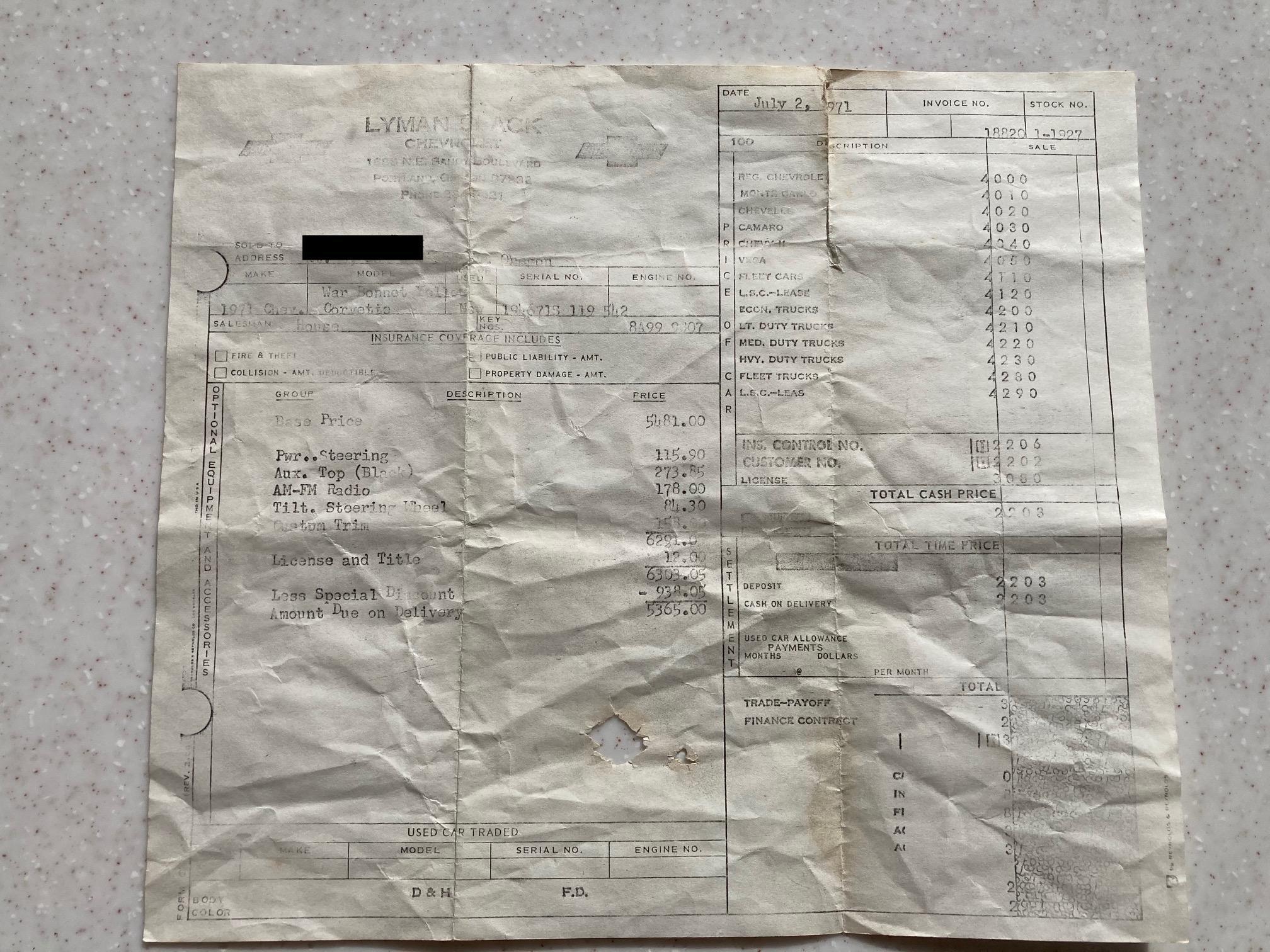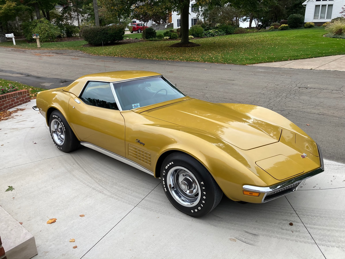According to our 1971 Corvette Production Numbers, this is one of 3,706 Corvettes built in 1971 with RPO 989 – War Bonnet Yellow.