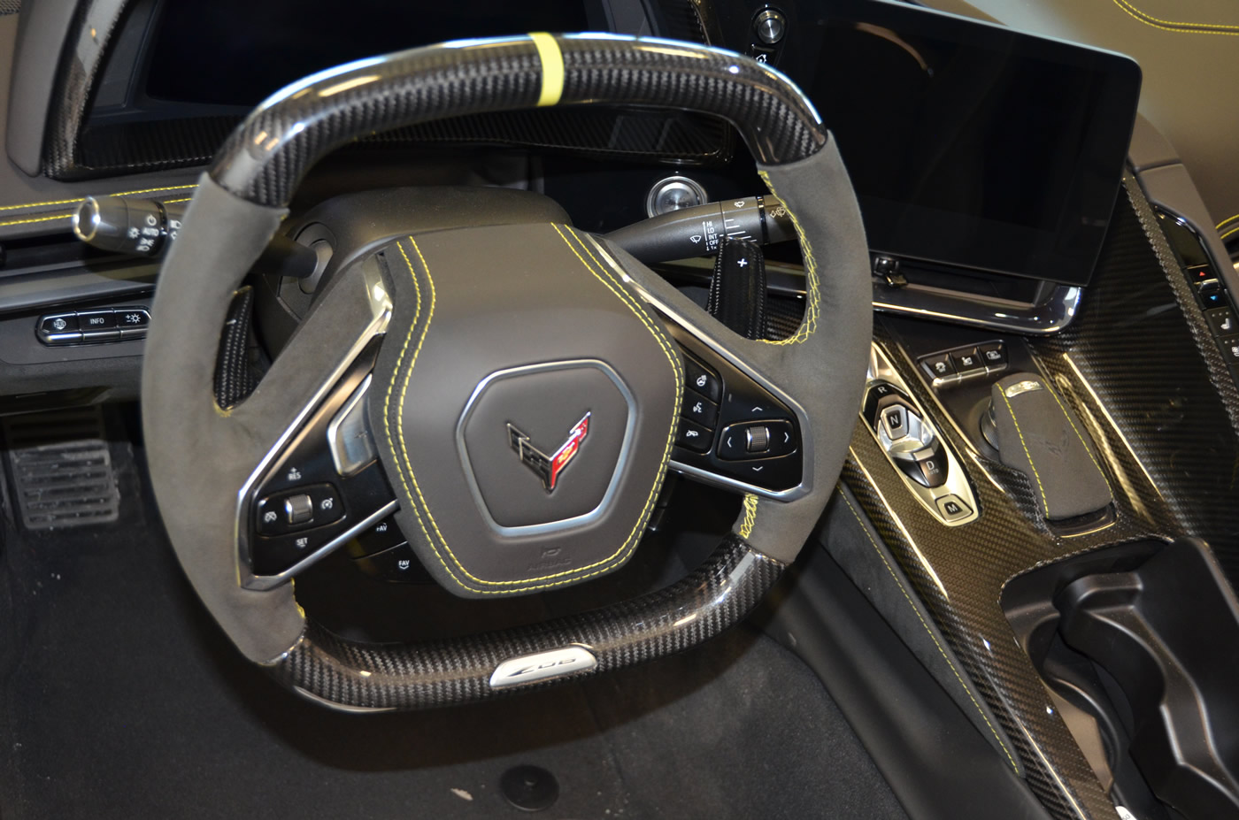 So what does it sound like when you fire it up? Absolutely glorious. It immediately barks with the sound of a pissed-off Ferrari and ever so slowly quiets down to a relatively quiet, deep-throated V8 engine at idle. As one of the members of the Corvette Tour staff drove the car into the dealership, it didn’t sound much unlike a typical Corvette Stingray. Have no doubt though, on the open road – this thing is going to scream!!!