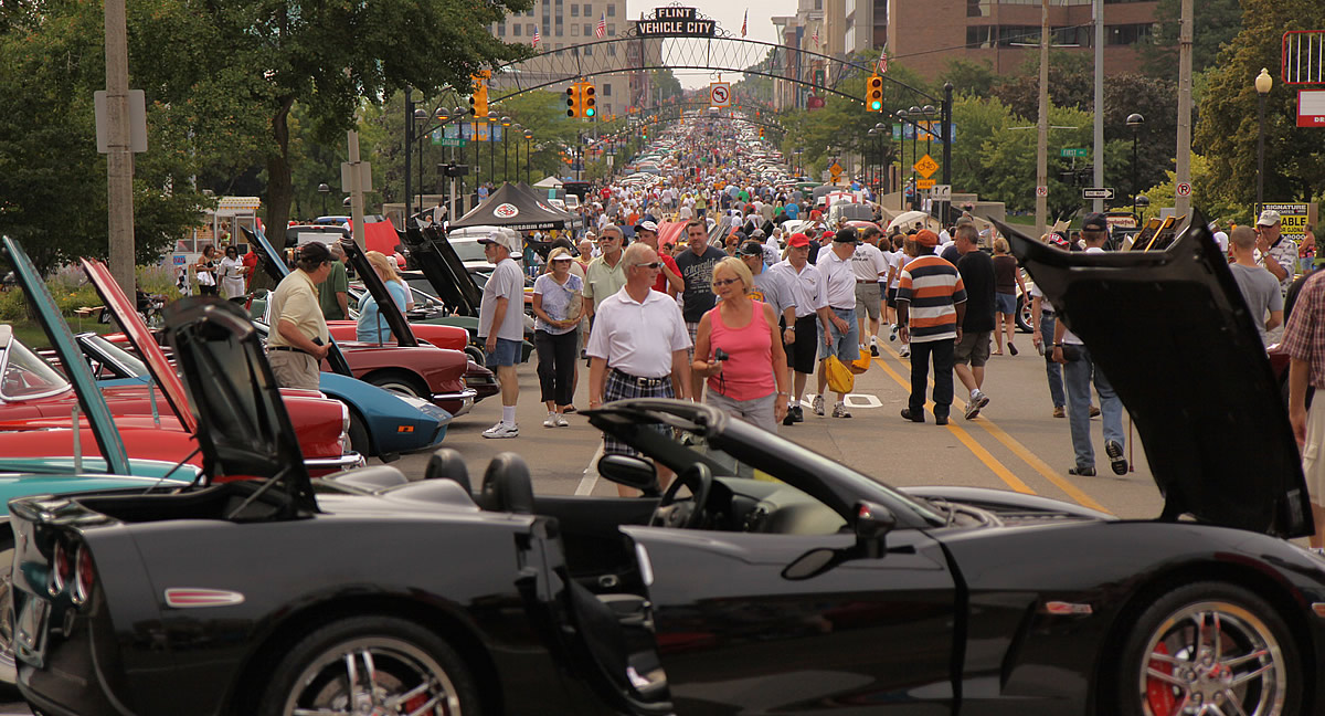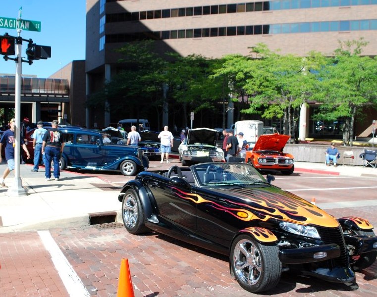 On Tuesday, August 13th, the Back to the Bricks main event week kicks off with a free drive-in movie, car show and party. Wednesday and Thursday have "rolling cruise" and swap meet events and Friday is loaded with events and activities: a car show, the Corvette "meet and greet" at the Brick Street Bar & Grill, in Grand Blanc, a vendor marketplace, and live music in the park. All of the events, cruises, and parties are just a precursor for the Saturday, August 17th, extravaganza when one of the most exciting and diverse car shows in the country is staged in downtown Flint, better known as "Vehicle City". The streets are lined with cars and trucks of every type from over 500 Corvettes to muscle cars, rat rods, customs, low-riders and award winning restorations of classics. The show is scheduled to begin at 10 AM but "those in the know" get there early because almost a half million other enthusiasts will pack downtown Flint to take part in the festivities and see hundreds of the interesting cars.