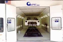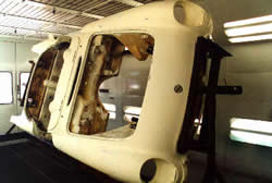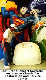Classic Car Restoration and Service Center is a brand new facility with state-of-the-art equipment capable of tackling the most complex restorations. "About the only thing we don't do in-house is chrome plating," Brand said. So off to the media blasting building went our soon-to-be-naked patient.Using plastic media hard enough to remove paint but not hard enough to damage the underlying fiberglass and gel coat, the body was completely stripped of its paint and primer, leaving only the bare fiberglass as laid down in 1953 in Flint, Mich. Since this car was to be perfect in every respect, the underside of the body was also stripped, even though 90 percent of this area will never be seen when the car is completed.