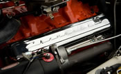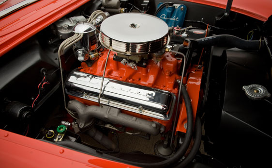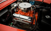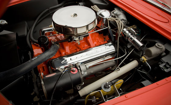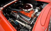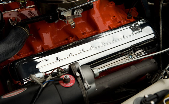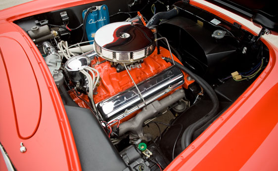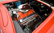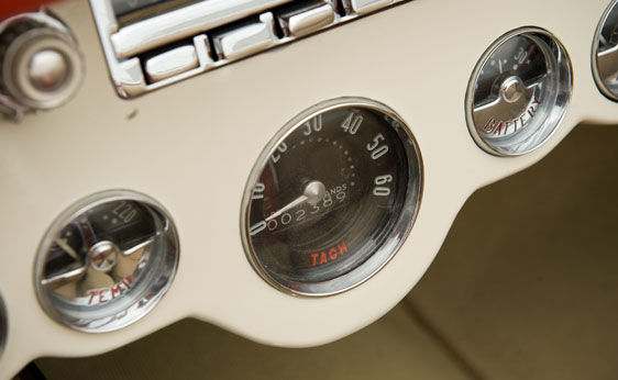 This example is powered by a 195 hp, 265 cu. in. V8 with a three-speed manual transmission and continues to benefit from a ground-up restoration. It includes virtually flawless paint, a correct cloth soft top, great chrome, a correct and as-new beige interior with perfect stitching noted on the seats and an AM radio. Underhood, the engine bay remains as new, with proper hoses, clamps and wiring throughout.