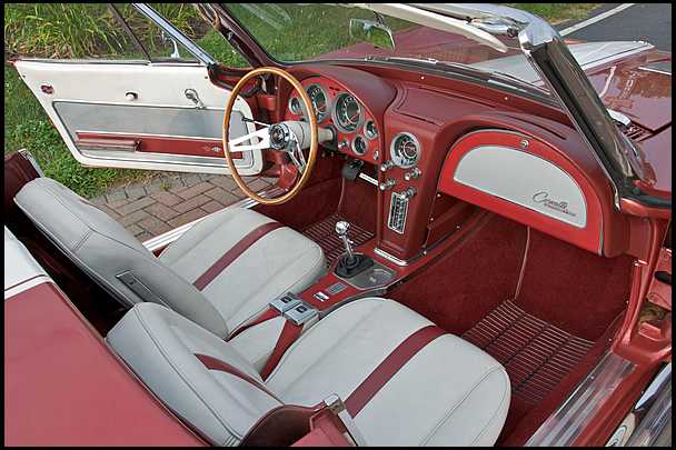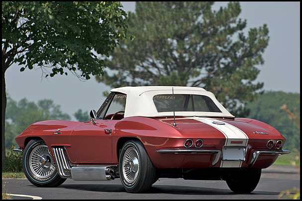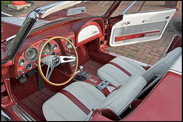 Closely patterned after the famous 1963 Sting Ray convertible built by GM for retired styling chief Harley Earl, this equally rare convertible was presented to Chevrolet Motor Division president Semon "Bunkie" Knudsen. Finished in Rose Pearl with a full-length White racing stripe, it is outwardly distinguished by its chromed header-style pipes. The interior shares the unique upholstery, grated foot-well plates and custom color scheme as the Earl Corvette, and boasts a specially finished fuel-injected 327CI small block.