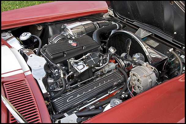 - 327 CI engine topped by a chrome plated Rochester fuel injection system