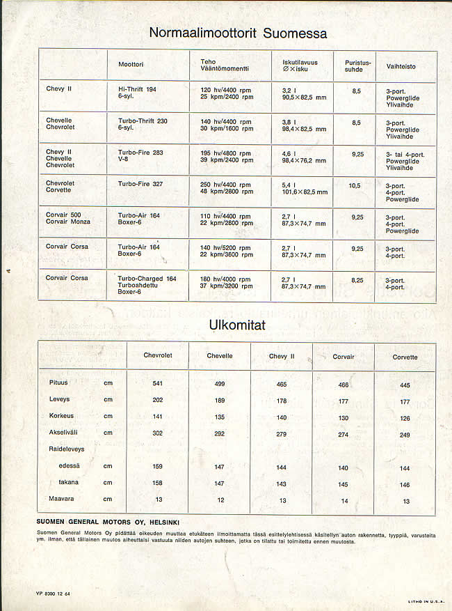 The following scanned images are of a very rare 1965 Finnish Corvette Sales Brochure. They were submitted to us by Kari Moro of Finland. He writes: