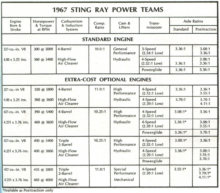 Below is a listing of 1967 Corvette specifications including powertrain specs, color specs, dimensions are more.