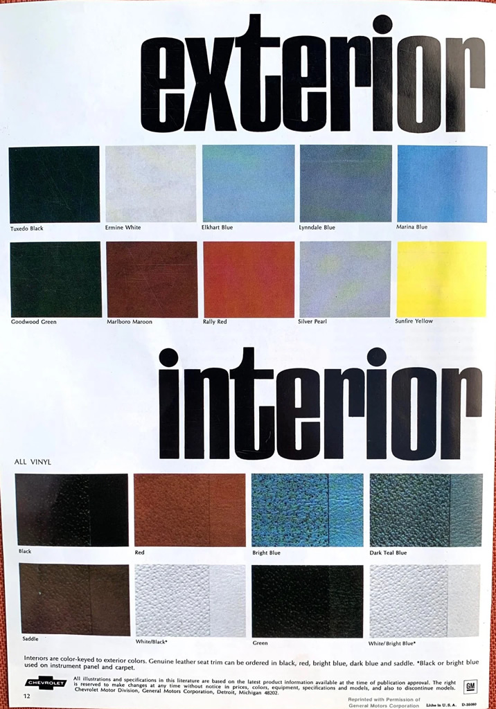 NOTE: There is at least one 1967 COPO Corvette that we are aware of that was ordered with RPO 001 - Bright Blue paint.