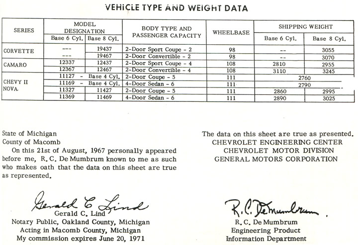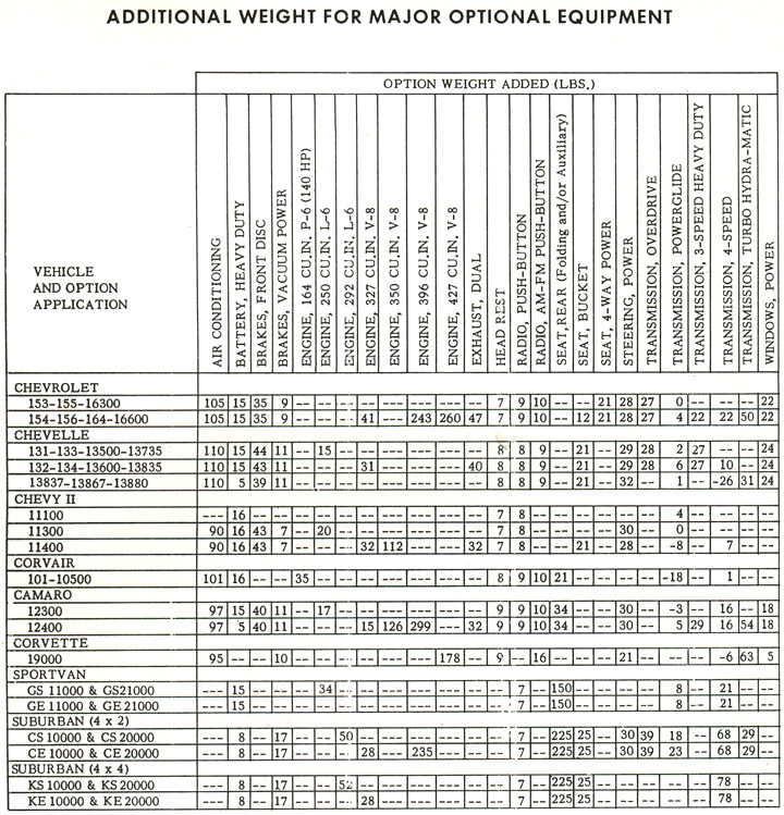 Below is a listing of 1968 Corvette weight specifications including shipping weight, and additional weight per option.