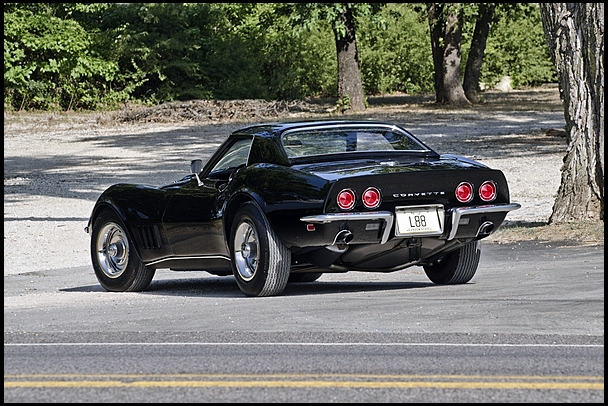 For three years from 1967 to 1969, the most powerful Chevrolet Corvette Regular Production Option available was the L88, a compendium of competition-oriented pieces headlined by the 427 CI aluminum-head V-8 engine packing forged steel crank and rods, forged aluminum 12.8:1 compression, a radical high lift cam actuating large valves and a single Holley 850 CFM 4-barrel carburetor on a dual plane aluminum intake manifold. The L88 leapt out of the gate with outstanding performances at Daytona, Sebring and Le Mans, where it set an all-time production class speed record. In a bold misdirection meant to discourage interest in the fire-breathing L88, Chevrolet rated the engine at 430 HP, five fewer than the Tri-Power equipped L71 at over twice the cost, in order to keep it out of the hands of the general public. In reality, the L88 generated well over 500 horses when properly tuned and fed a diet of high-octane fuel. Still in possession of its original factory installed engine, this 1968 Chevrolet Corvette L88 is one of only a handful of Tuxedo Black L88 convertibles known to exist out of the total production years of 1967, '68 and '69, fewer than half of which were convertibles. Its no-hit body was restored by well-known Nabers Motors in Houston, Texas. After its frame-off, nut-and-bolt restoration was performed, this 16,000 mile L88 received the high honor of being Bloomington Gold certified and invited to many Bloomington Gold Special Collections. It is finished as-original in Tuxedo Black, still retains its original black leather seats with most of its original interior and sports Rally wheels and an auxiliary hardtop. Other options on the NCRS authenticated original documents are K66 transistorized ignition, 3.70 Positraction rear axle, M22 4-speed manual transmission, White soft top, Soft Ray tinted glass, F41 suspension, J56 power brakes and N11 off-road exhaust. The car's extensive documentation includes the original order sheet, dealer invoice, Protect-O-Plate, and several registrations including the 1968 title application.