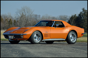 Documented by its GM Shipping Data Report as exported by GM Overseas Distribution (dealer code #1 in zone 79), this car was built on May 25, 1971 and was shipped to its first owner, an American living in Germany; it was returned to the United States in the early 1980s. It has been body-off restored to immaculate condition and was inducted into the Bloomington Gold Special Collection in 1999, the Bloomington Gold Corvette Hall of Fame in 2003 and was part of the National Corvette Museum's Concours d'Performance Exhibit. In addition to its LS6 454/425 HP engine, it is optioned with aluminum heads, shoulder harnesses, auxiliary hardtop, 3.55 Positraction differential, A.I.R. smog controls, aluminized exhaust, Soft Ray tinted glass, Rally wheels and Blackwall tires. This historically significant Zora Corvette is also accompanied by prodigious documentation that includes the two-page tank sticker, build sheets and owner history.