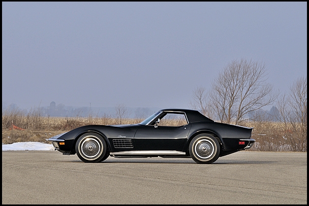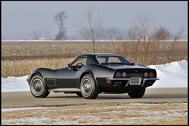 Only one Corvette received a factory-applied Black paint in 1972, and this is it. Known simply as "The Black 72", this 1972 Corvette convertible was built by an executive special order placed by GM President Pete Estes. It was factory equipped with a 350/200 HP V-8, Turbo Hydra-Matic transmission, air conditioning and an auxiliary hard top and retains all that original equipment today in addition to the original paint, interior and soft top. Notable for its appearance in Jessica Simpson’s 2004 music video "Take My Breath Away", the car was also awarded the NCRS 4 Star Bowtie and Top Flight awards - the latter with a score of 96.6% - in 2011. Truly a collectable, museum quality piece, the "Black 72" is extensively documented with multiple build sheets, tank sticker, window sticker, Protect-O-Plate, shippers copy, owner's manual and complete ownership history.
