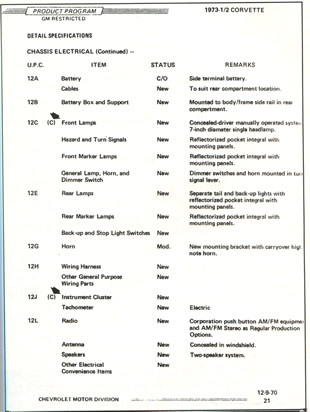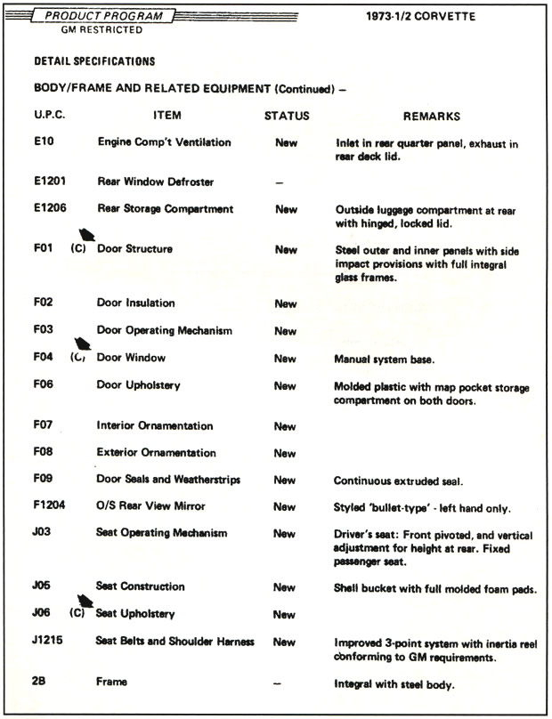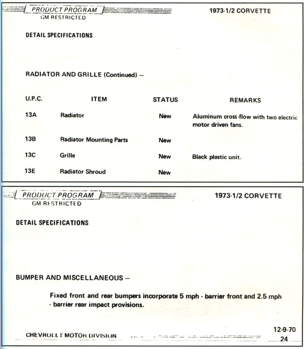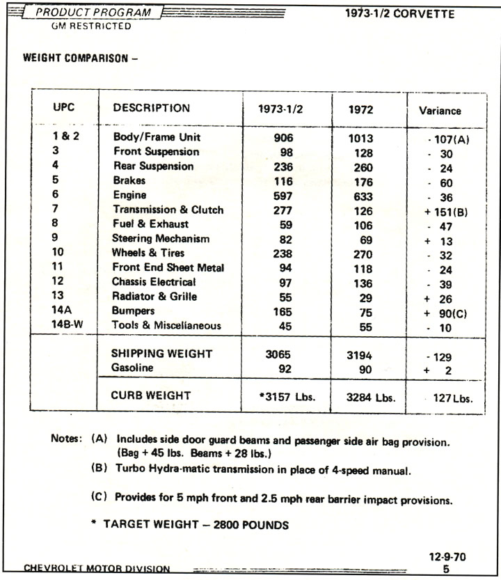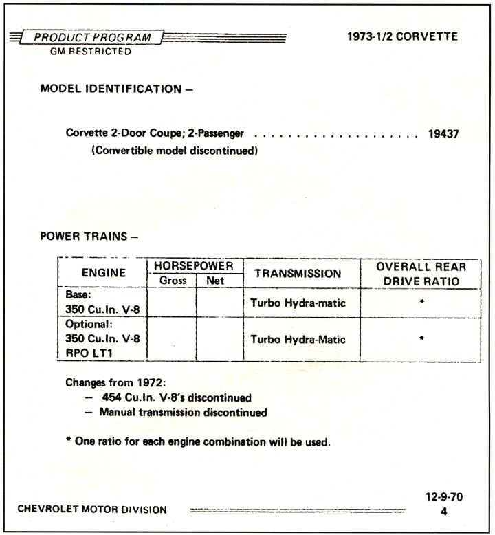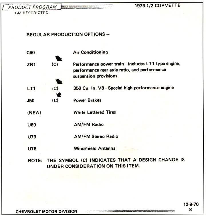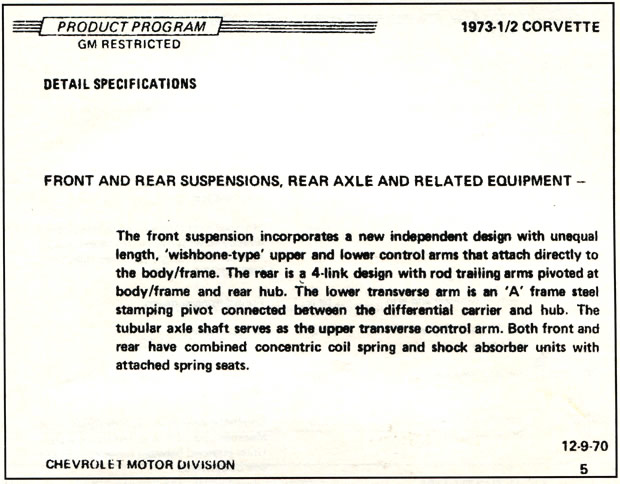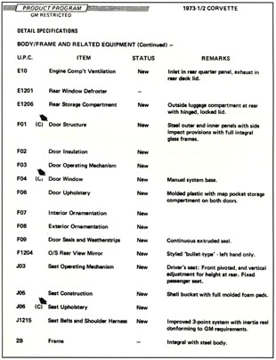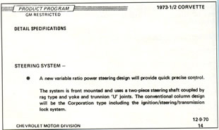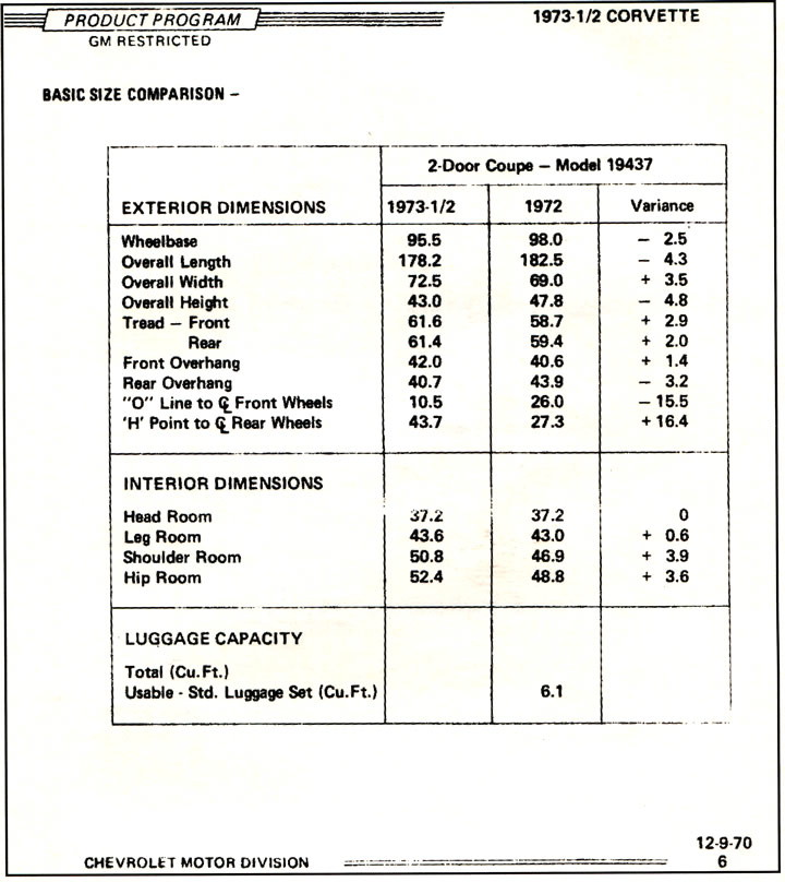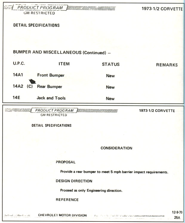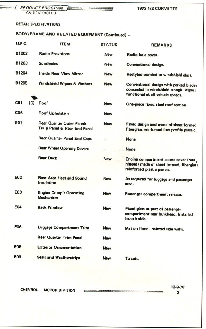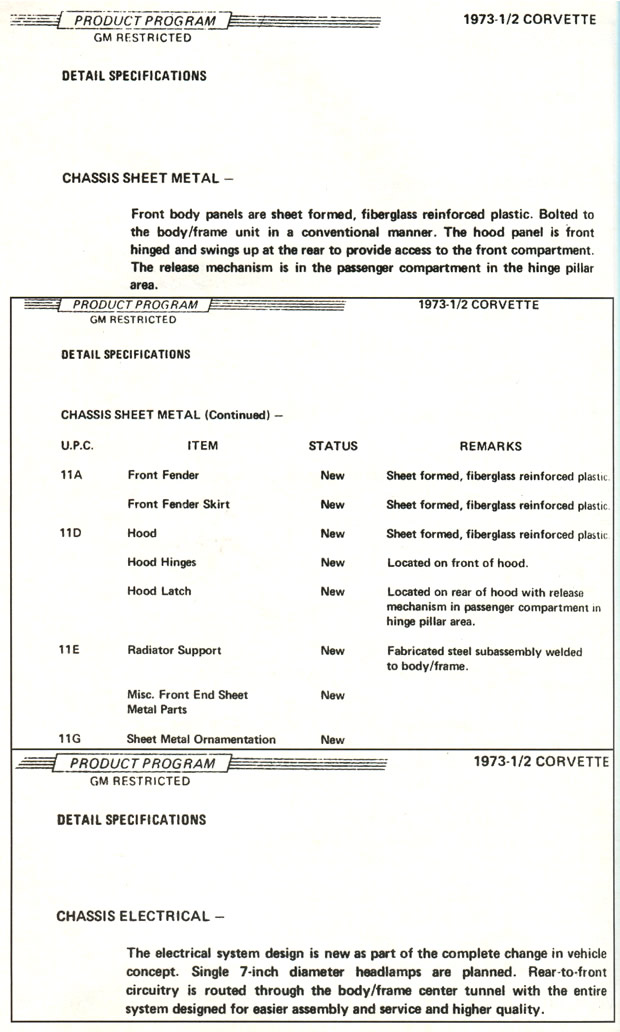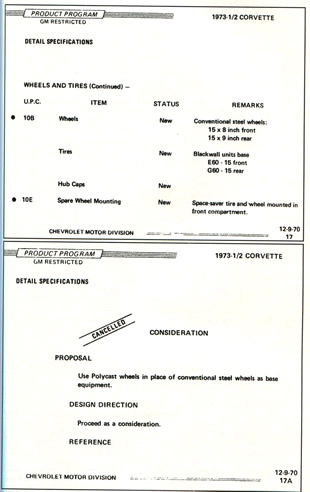 The Chevrolet Engineering documentation that outlines the development and specifications of the 1973 mid-engine Corvette is nearly fifty pages long and dated December 1970. Below is some of the documentation shown. Click on the individual images for a larger view.