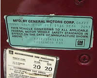 - Description: The vehicle manufacturer decal lists: