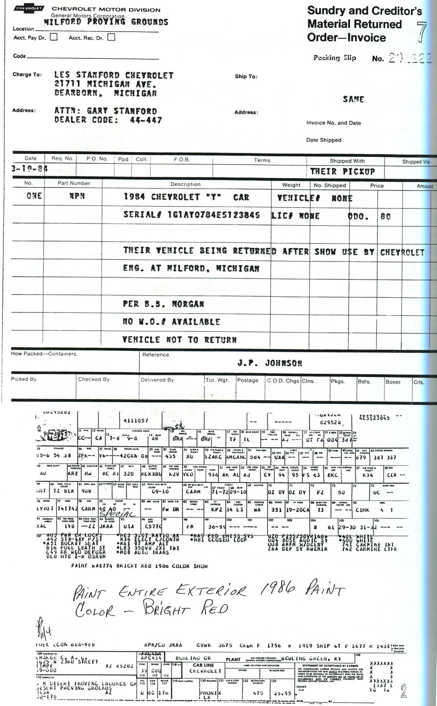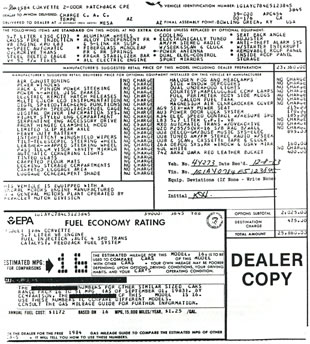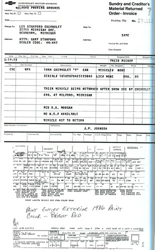 Below is the actual Technical Service Bulletin that was issued to Chevrolet dealers regarding these twelve specially painted 1984 Corvettes: