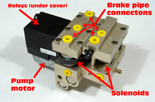 Considering those prices, it's wise to enhance BPM life with the following procedures. First: when you change brake pads, never push brake caliper pistons back without opening the caliper bleed screws. Failing to do that forces old brake fluid to back-flow through the BPM. That fluid will be contaminated with dirt, corrosion or moisture and, because fluid back flow is not filtered, contamination could lodge in a solenoid valve and, eventually, cause the valve to stick. The solenoid valves are normally-open, however after an ABS application, in the very rare case a valve sticks in the pressure hold or decrease positions, base brake system performance may degrade. The symptoms would be the service light on and the brakes pulling to one side.