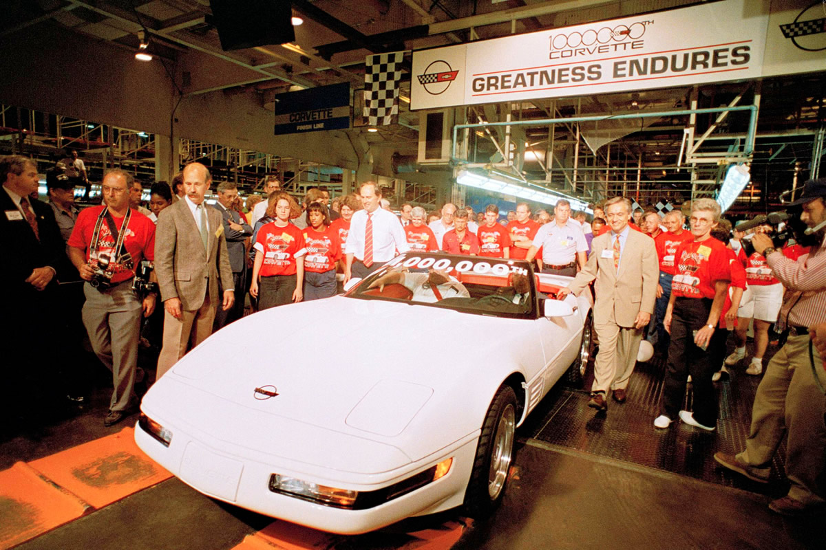 | The 1,000,000th Corvette rolled off the assembly line--a convertible dressed in Polo White paint and bright red interior commemorating the very first 1953 Corvette which rolled off the assembly line with the exact same color combination. The 300 hp LT1 engine debuts, dramatically increasing the performance of the Corvette. |