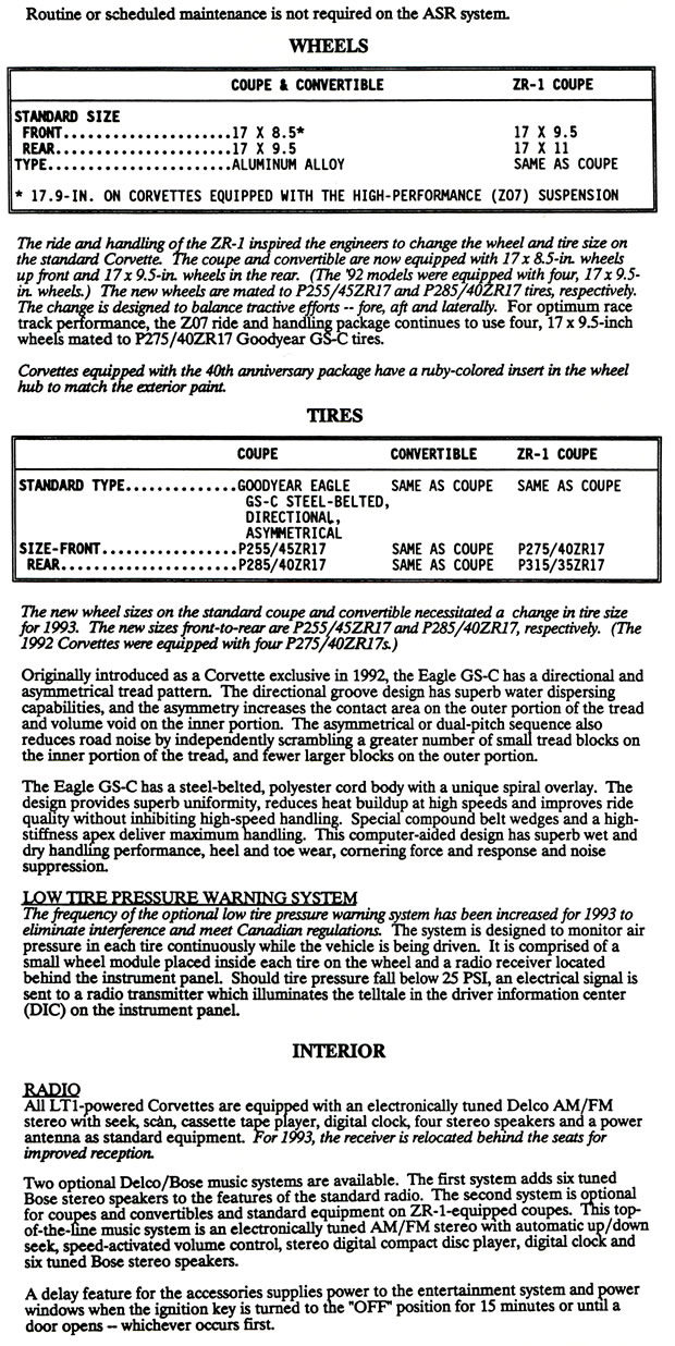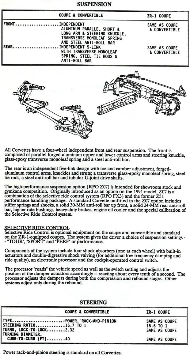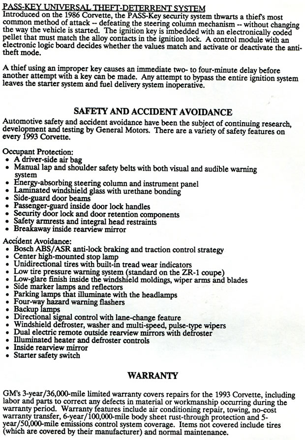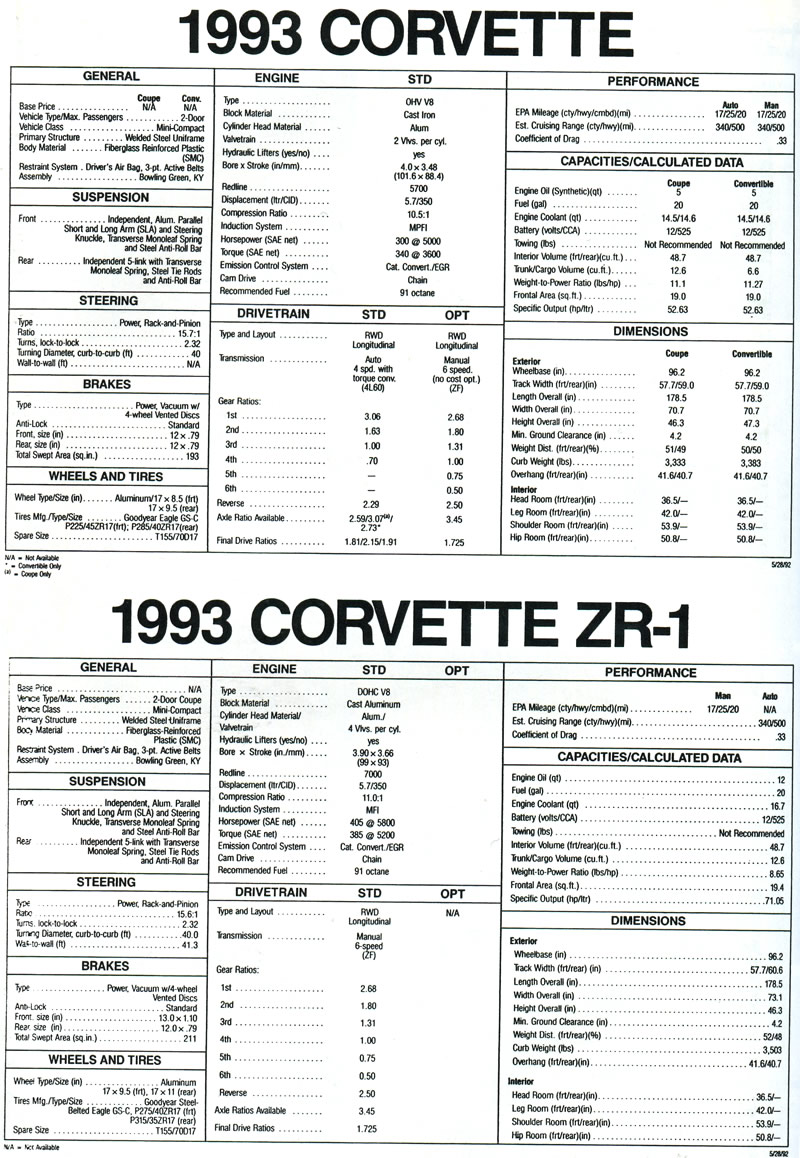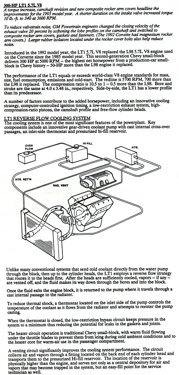 The following information below was presented to the media attending the long lead press preview for the 1993 Corvette LT1 and ZR-1 in Bowling Green, Kentucky held in 1992.