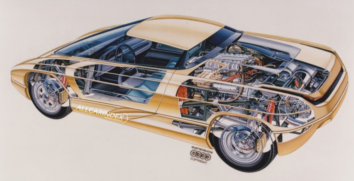 "We got a random call from Italy during Jan 90 that basically said 'we're building a special with an LT5 engine, can you help?' I probably said something less polite than 'don't be silly!!' A few weeks later, I went off to Bertone outside Turin to wire it up and make it work. CPC had given them a motor and other parts. I worked 84 hours from 8am Mon to noon Sat, and it drove out of the workshop to meet Nuccio Bertone."