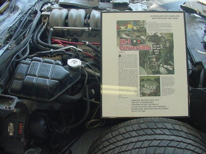 The following pictures are of a 1990 ZR-1 convertible prototype #5 that GM was testing. This prototype was unearthed near Lotus Engineering in England and brought back to the U.S. These photographs show the car at a dealer in Florida where it is awaiting a complete restoration. Cars & Parts Corvette Magazine, December 2000 issue did a complete article on this rare Corvette! Click on the pictures for a closer look.