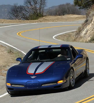 First thing I did with this Le Mans Blue bullet was run it up Glendora Mountain Road. Just 20 minutes from my Southern California office, "GMR" is the closest place the "extreme performance enthusiasts," whom Chief Engineer, Dave Hill, claims are the market for the Z06, can get for a driving workout.