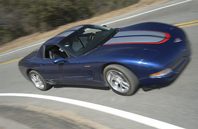 Entering fast turns over a few bumps, the '04 Z06 is more comfortable at the limit than were '01s,'2s and '3s. I didn't have to work quite as hard on smoothness. This increased "forgiveness" during corner-entry builds confidence. Clearly, GM made some useful changes in shock valving and we'll get to those changes in a minute.