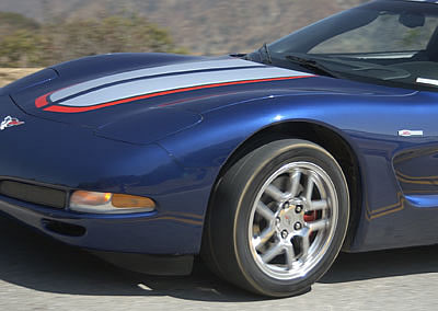2004 is the last year for the Generation Five Chevrolet Corvette. It will be replaced late this summer by the "C6", so we thought a farewell drive in a C5 made sense. General Motors Communications loaned us a '04 Z06 equipped with RPO Z16, "Le Mans Commemorative Edition", which includes a lightweight, carbon fiber hood and a red-accented, white strips over Le Mans Blue paint scheme which mimics the look of GM Racing's '03-spec. Corvette C5R Le Mans race cars.