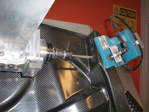 Because of their complex plan-view sweeps, demolded parts are edge-machined on an automated, high-speed, 5-axis robotic router from KMT Robotic Solutions (Auburn Hills, Mich.), which is capable of cutting very tight radii and negotiating complex slope changes at high spindle loads.