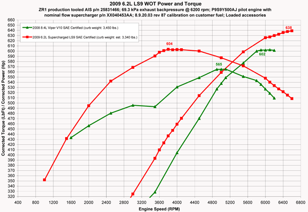 On 25 April, at the National Corvette Museum's "C5/C6 Bash", during an LS9 seminar in front of a standing room only crowd in the NCM's Chevrolet Theater, GM Powertrain, Small Block Chief Engineer, Dean Guard, revealed the official, SAE J2723, power and torque ratings for the 2009 ZR1's engine: an astonishing, 638 horsepower at 6500 rpm and 604 lb/ft torque at 3800 rpm.
