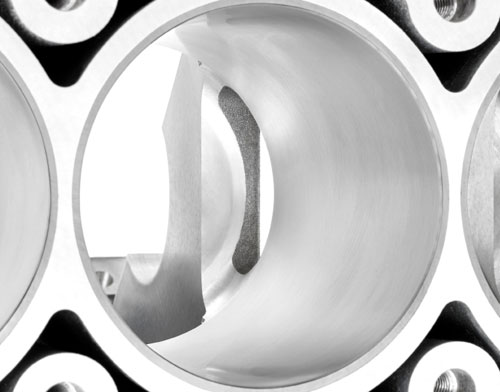First, there is a further strengthening of the main bearing webs by once again redesigning their windows. These windows allow the bay-to-bay breathing and oil windage control which helps lessen parasitic power loss and reduce crankcase oil windage.