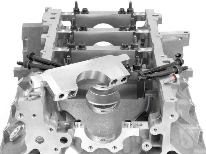 Second, the main bearing caps are forged steel, like those those in the LS7, rather than sintered, powdered steel units in other Gen 3/4 engines, and they are aligned with dowel pins, another LS7/LS9 exclusive.