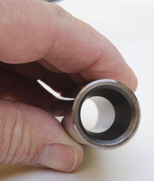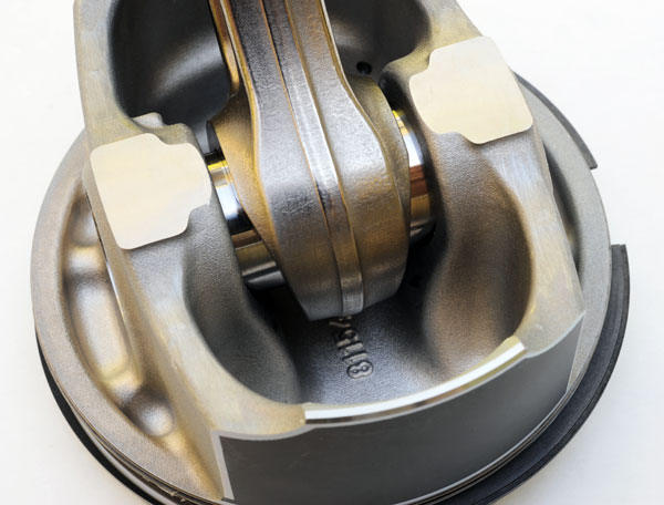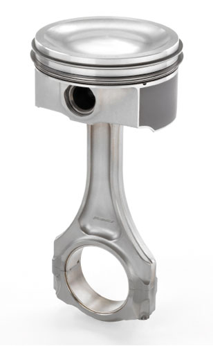 The LS9 unit differs from the "ti" rod used in the LS7 in that it's .160-in. shorter. It's, also, .108-in shorter than the forged steel, LS3 unit. Less rod length accommodates the piston's greater compression height. Unlike other rods, the small ends of LS7 and LS9 rods are tapered with the top more narrow than the bottom. This allows GM to enhance the structure of the piston around the pin bores by widening the tops of the pin bosses. That increased the strength of the upper portion of the pin bores so the load from higher combustion pressures and, with LS7, higher engine speed, could be spread to a larger volume of piston structure.