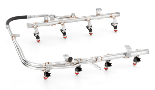 The LS9 fuel system must provide a wide range of flow rates, from wide-open-throttle (WOT) at 638hp, to part throttle cruising on the highway getting 25 mpg and smoothly idling through the takeout window at Burger King and everything in between. That's a very wide dynamic range, too wide a range for a system using a single fuel pressure to control. ZR1s have a fuel system control module which sets the LS9's fuel pressure at one of three levels, depending on fuel flow: 250 kPa, for operation requiring less than 15 grams per second fuel flow, 500 kPa for operation requiring between 15 and 45 g/s and 600 kPa for high-rpm, wide-open-throttle operation needing more than 45 g/s. The engine's fuel need at peak power is about 58 g/s at 600 kPa.