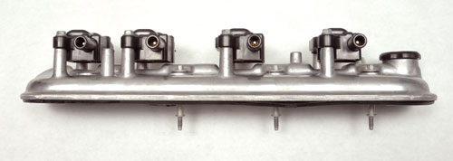 Obviously, feeding an engine generating 638-hp requires a "big" injector. LS9 uses injectors rated for 6.52 g/sec. (51.7 lbs/hr) at 400kPa and which have about 20% greater flow capacity than the units in an LS7. In addition, they are "bent spray" injectors, the use of which was a packaging choice allowing the injector to be mounted vertically—to minimize flow restriction caused by the injector cavities in the intake manifold—but spray at the back of the intake valve. "The fuel comes out of the injector at an angle." Yoon Lee told us. "Think about a fuel injector for a four-valve engine. The injector (spray) will spread out. (You) have two sprays, one targeted on the back of each intake valve. So the technology was already out there to make the injector spray at an angle, off the centerline of the injector. Think of this as a dual spray injector for a four-valve engine, but you're only using one leg of it. That means the injector has to oriented a certain way. The orientation feature is in the injector clip to the fuel rail. You can only install the clip if the injector is correctly oriented."
