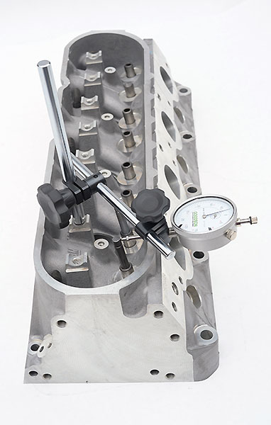 If you're using a dial indicator, the challenge comes in trying to position it to properly measure stem-to-guide clearance as shown by the drawing in the Service Manual. In fact, it's impossible. The manual shows a dial indicator measuring stem-to-guide clearance just above the top of the valve guide. While that is the best place to measure, the LS7 head structure will not allow a dial indicator to be positioned such that accurate measurement is possible because the angle between the indicator spindle and the valve stem is significantly less than 90°.