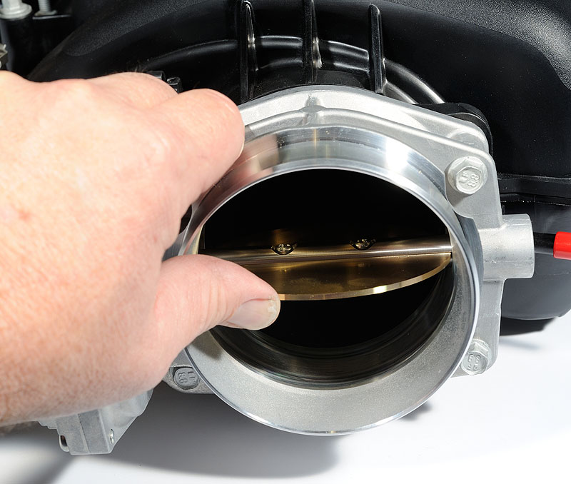 The intake manifold, throttle body, fuel injectors and fuel rail are assembled by a supplier and shipped to the Performance Build Center as one piece. The LS7 uses a "4-bar" fuel system which runs at 400-Kpa or 58-psi. The injectors flow 5-gram/second (39.6 lbs/hr) at 58-psi. They're made by Bosch have all stainless internals--the norm because of ethanol-blended gasolines--and are a ball-and-socket-with-dispersion-plate design.