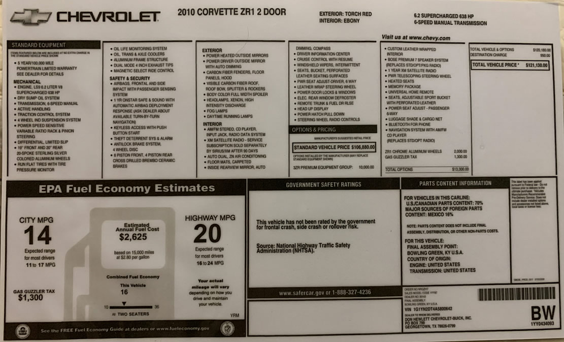 The window sticker below is a facsimile of what the real window sticker might look like. We are not responsible for the accuracy of the numbers and details below.