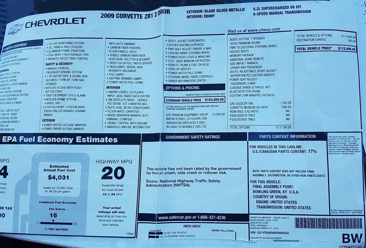 The window sticker below is a facsimile of what the real window sticker might look like. We are not responsible for the accuracy of the numbers and details below.