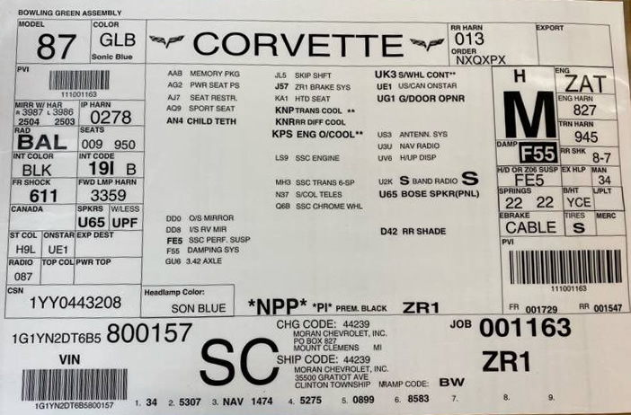 | Q6B - ZR1 CHROME ALUMINUM WHEELS | R8E - GAS GUZZLER TAX |