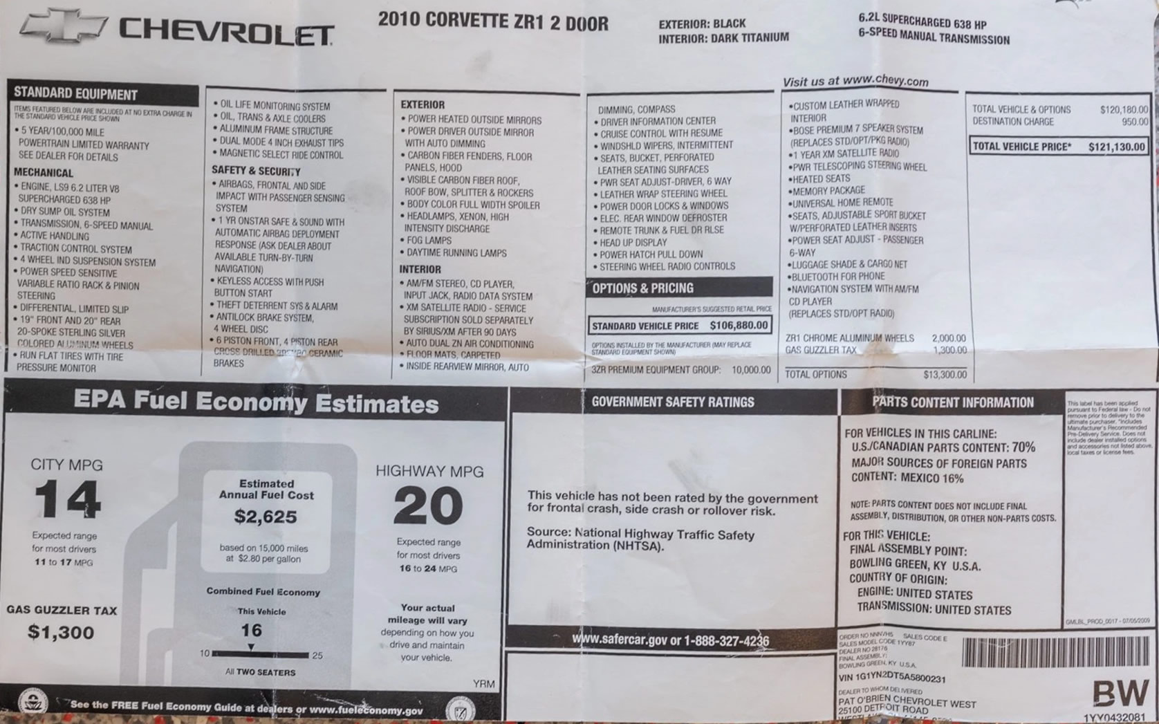 The window sticker below is a facsimile of what the real window sticker might look like. We are not responsible for the accuracy of the numbers and details below.