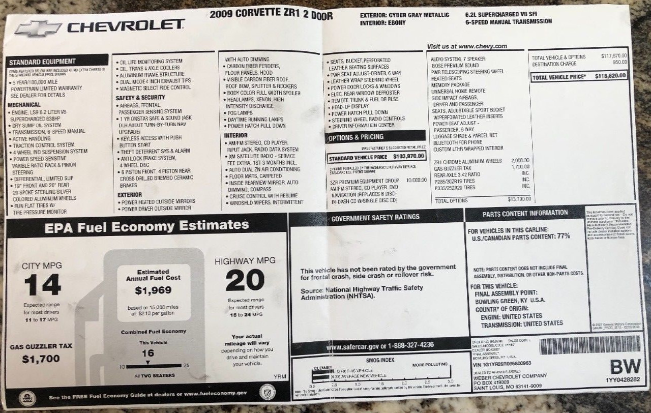 History of: 2009 Corvette ZR1, Serial #963:
