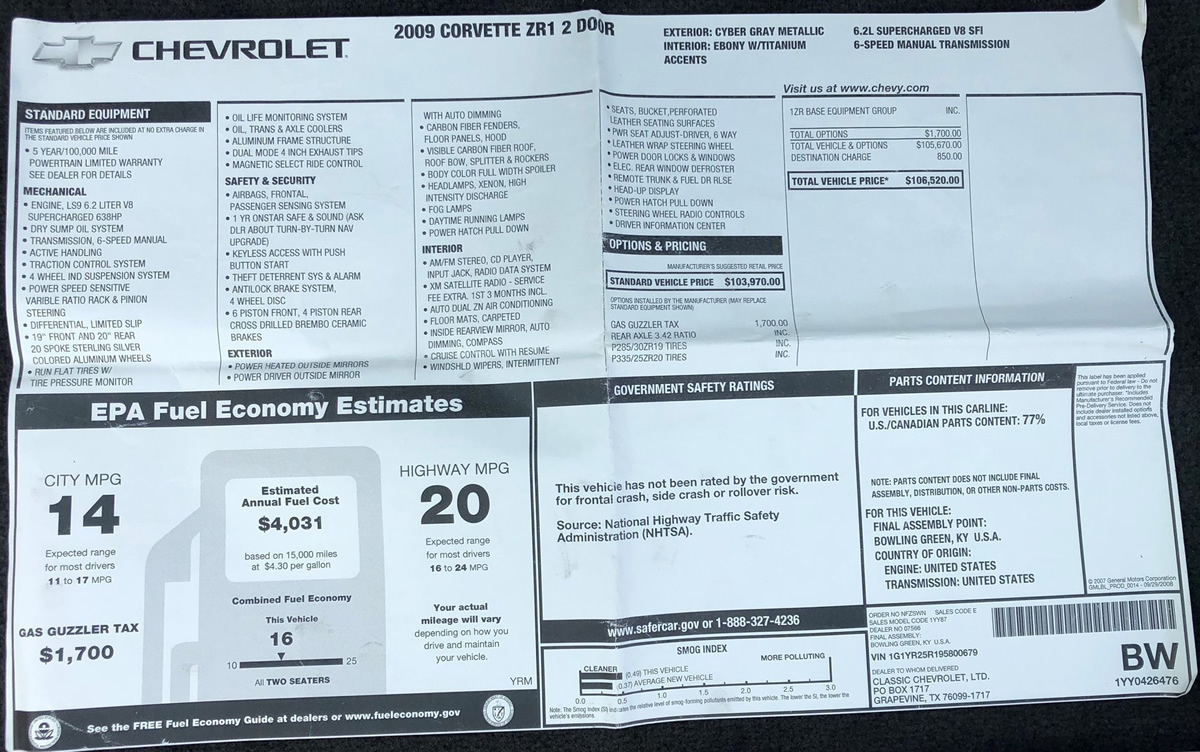 The window sticker below is a facsimile of what the real window sticker might look like. We are not responsible for the accuracy of the numbers and details below.