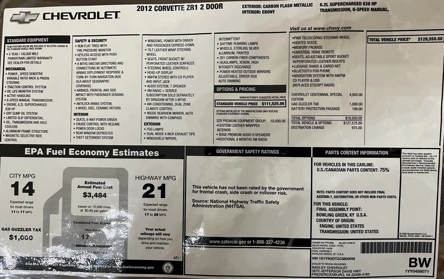 Below, are the production details and historical owner information for 2012 Corvette ZR1, Serial #58: