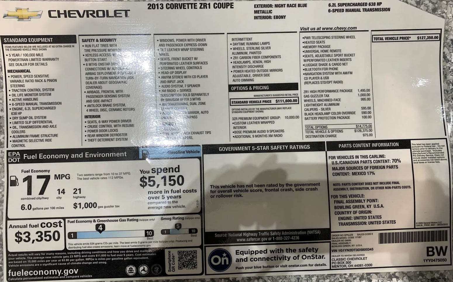 2013 CORVETTE ZR1 COUPE GENERAL MOTORS LLC