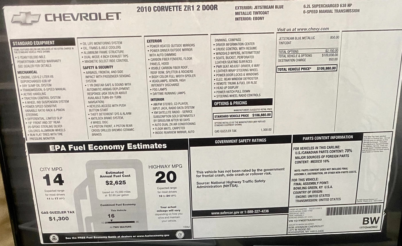 The window sticker below is a facsimile of what the real window sticker might look like. We are not responsible for the accuracy of the numbers and details below.