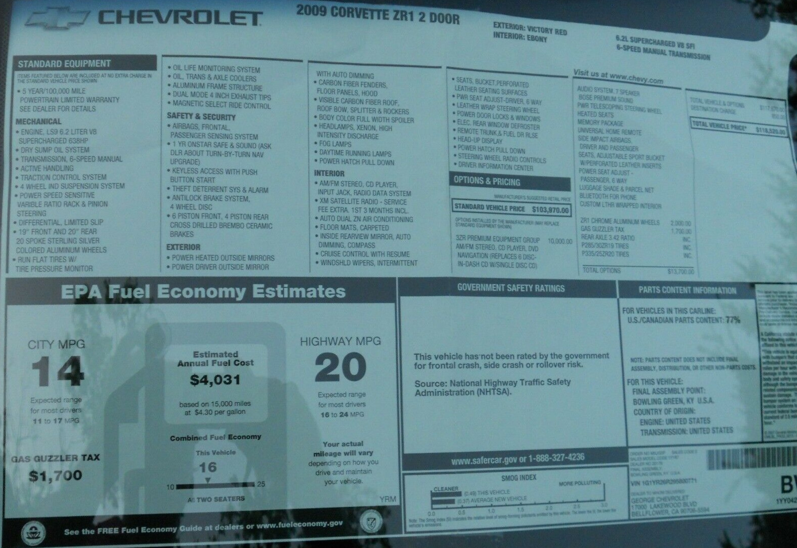 | Q6B - ZR1 CHROME ALUMINUM WHEELS | R8E - GAS GUZZLER TAX |