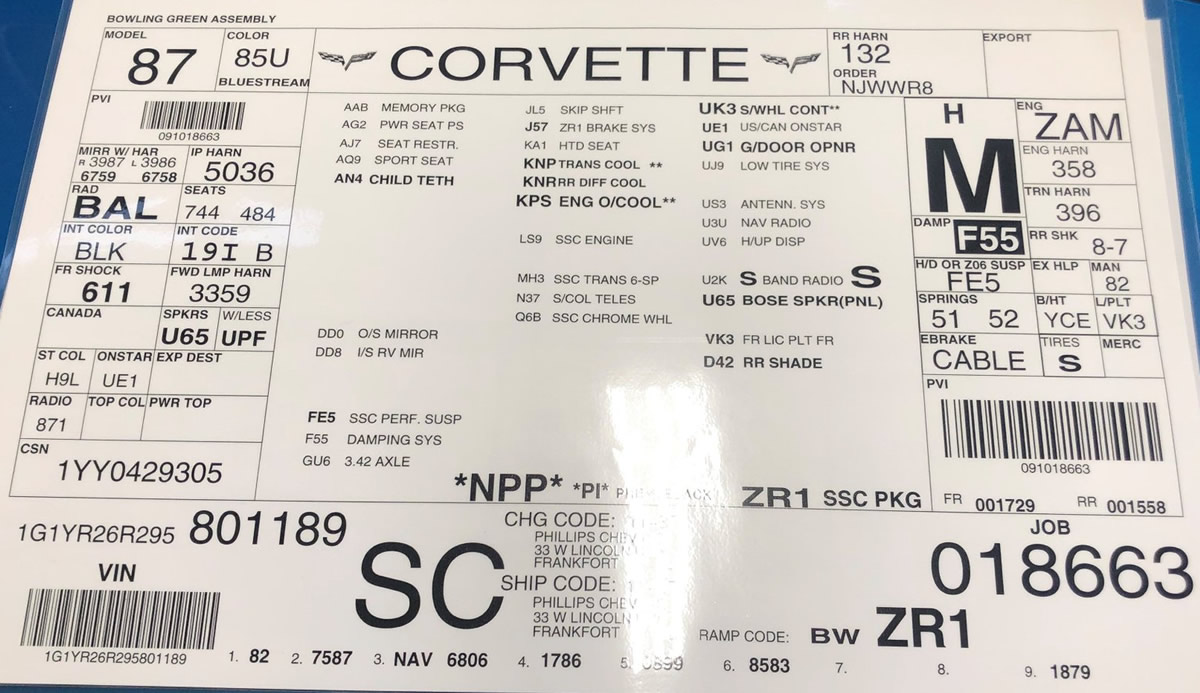| ZR1 - PERFORMANCE PACKAGE SPECIAL COUPE | |