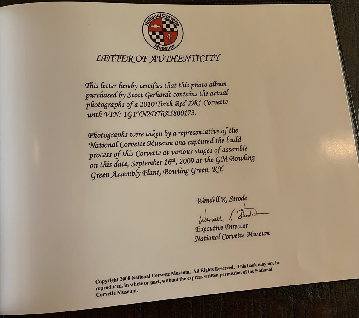 | Current Owner: Gerhardt, Scott | Corvette Action Center Forum Member: NA |