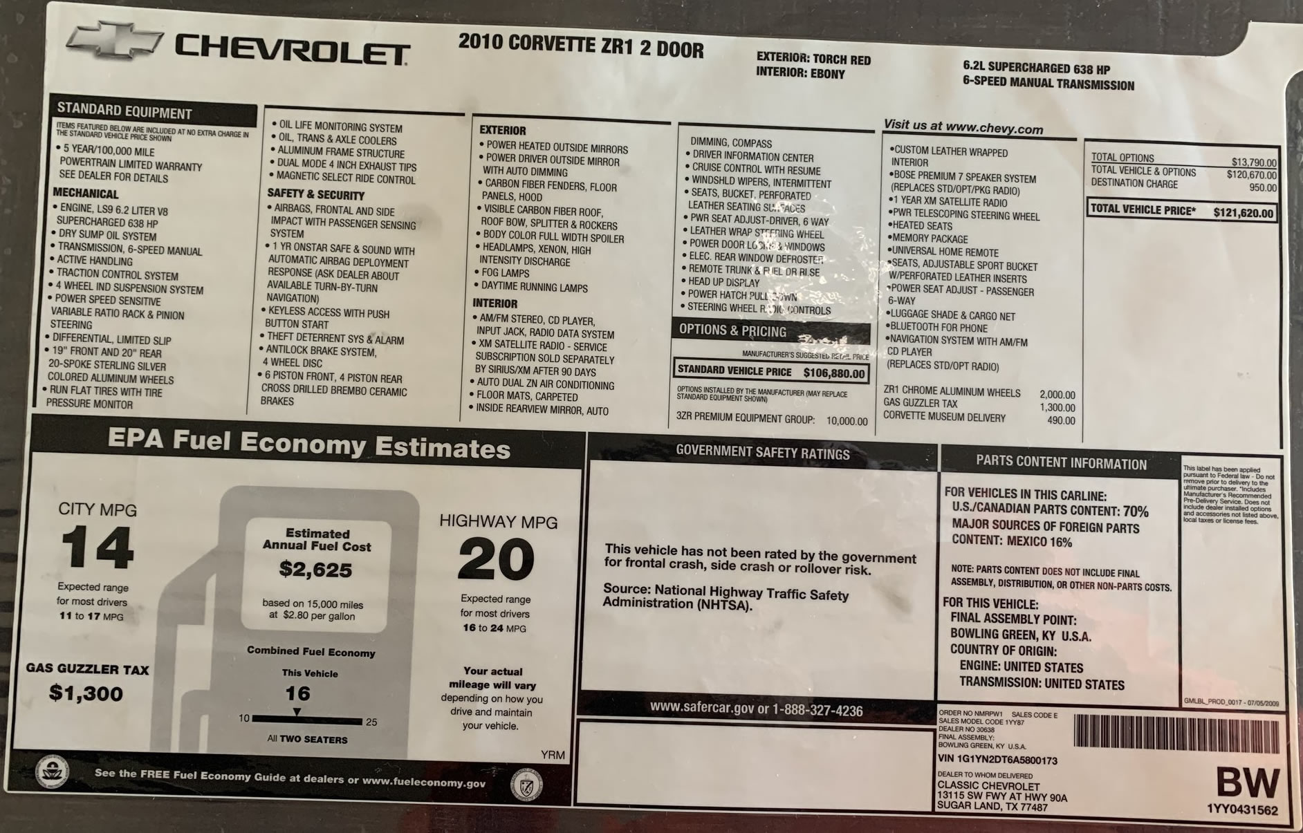 The window sticker below is a facsimile of what the real window sticker might look like. We are not responsible for the accuracy of the numbers and details below.